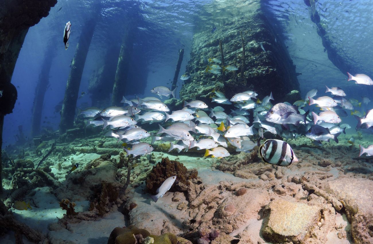 Salt Pier is a Bonaire shore diving spot that offers a mix of man-made structures overgrown with marine life and stunning natural beauty. The unique pilings create mesmerizing light patterns, making this site perfect for underwater photography.
